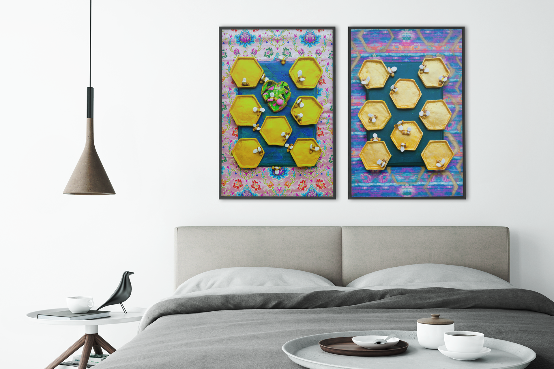 Artwork shown in styled setting for ambiance. Please note dimensions listed for accurate scale reference. Sold unframed to allow for personalized presentation in your space. Delivery calculated depending on your location.